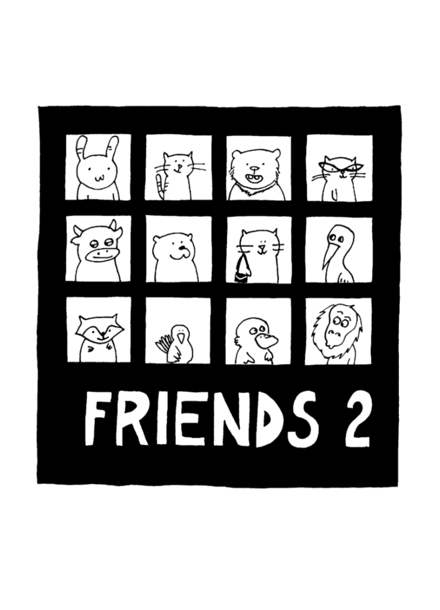 Friends 2 is a 119-page comic book put together with excerpts from my interactions with 12 people who were my friends at some point in my life (some still are).